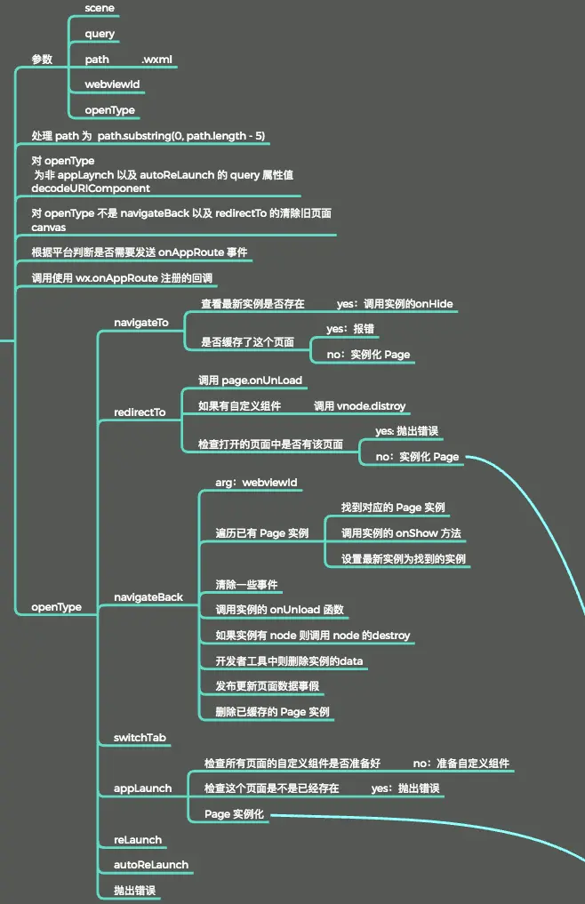 在小程序中切换页面或打开页面时会触发 onAppRoute 事件,小程序框架通过 wx.onAppRoute 注册页面切换的处理程序,在所有程序就绪后,以 entryPagePath 作为入口使用 appLaunch 的方式进入页面。