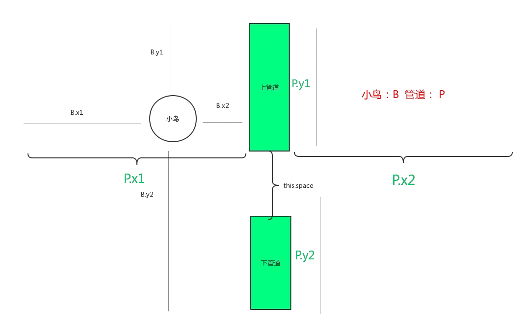 小鸟与管道的碰撞检,当前一屏显示的管道都会存在数组中,因为管道是长度不等的,我们检测小鸟与每一条管道的碰撞