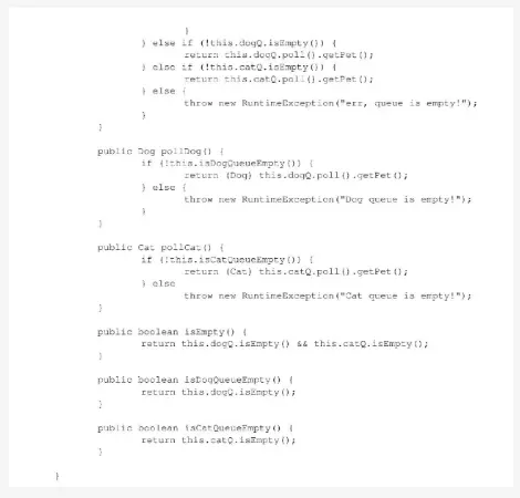 用户可以调用iscatEmpty方法,检查队列中是否还有dog或cat的实例;