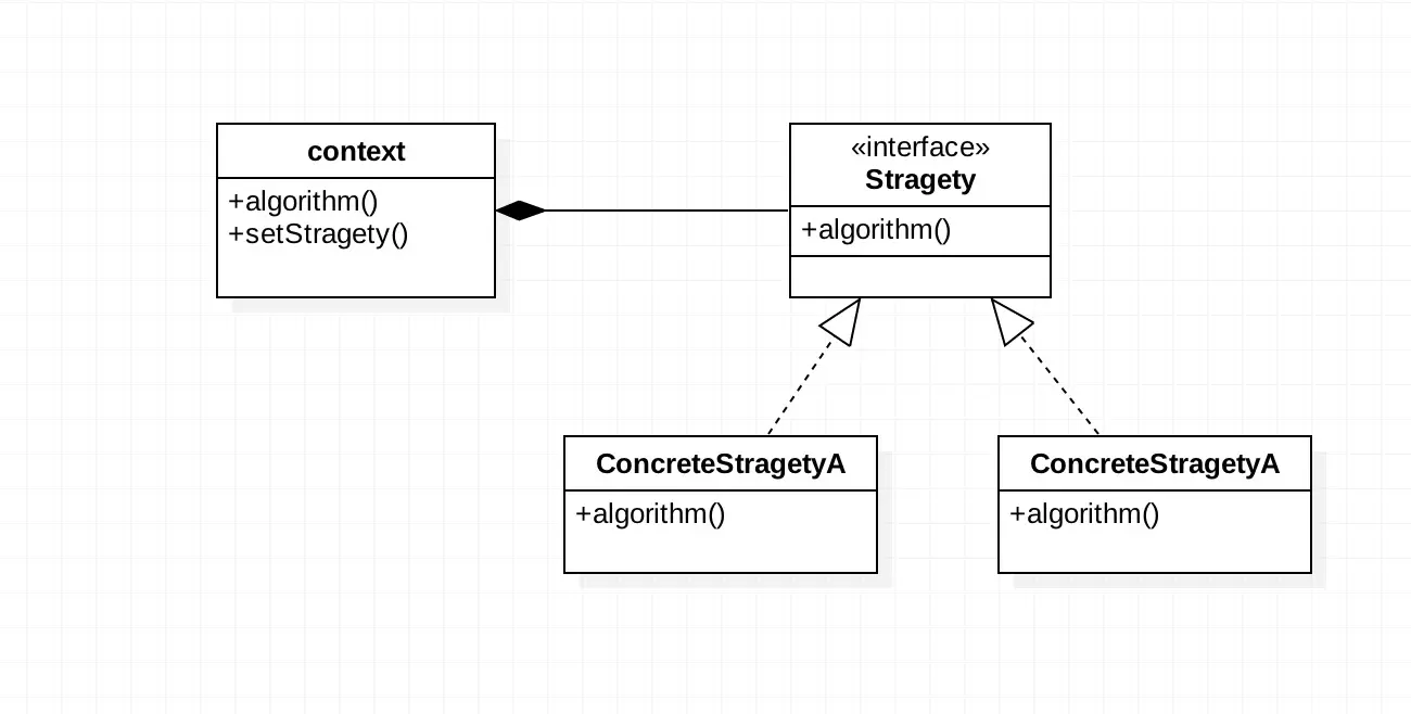 在Stragety中抽象出算法或者策略的统一接口;对具体的实现算法进行封装,实现统一接口;环境上下文中根据具体情况,实例特定算法并注入实现对象以完成具体功能。