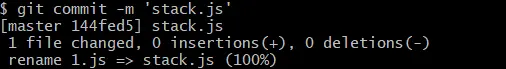 5.添加完成之后就得提交了git commit -m "你的提交文件名"提交的文件就是第三步修改完成的文件,上面我们修改的文件是stack.js,这里我们的文件名就可以输入stack.js。