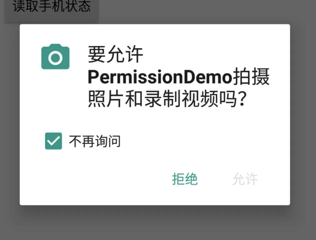 或者记录用户勾选了不再询问 Google提供了一个非常好的思路,详见EasyPermissions . EasyPermissions并没有存储上一次shouldShowRequestPermissionRationale( )的返回值,而是在申请权限被拒后调用shouldShowRequestPermissionRationale( )方法,如果此时返回false则说明用户勾选了“不再询问”。
