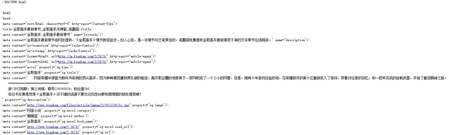 看到后一脸懵逼,把全部内容copy出来看,也并非乱码,内容跟网页的源码是一致的,但为了美观点,在读取的时候改一下编码,就变成这样了(如果有编码问题,也是同样的处理方案):