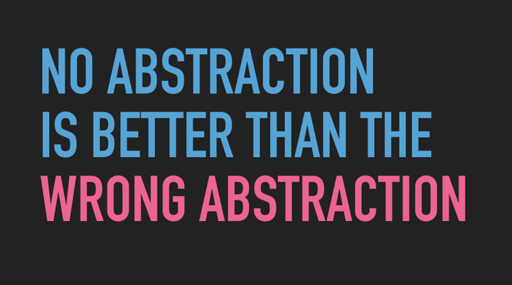 我想再多说一点,那就是人们有时会说,根本没有抽象比错误的抽象要好。这其实意味着错误抽象的代价非常高,所以要小心。但我认为有时这句话被误解了,这并不意味着你应该不要抽象,这只是说你在设计抽象时必须非常小心。