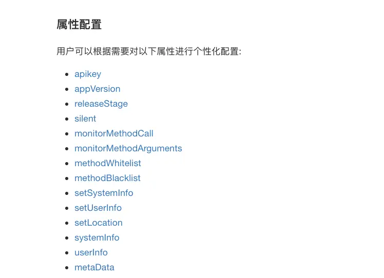 Fundebug的微信小程序插件默认只会抓取错误信息,也就是说,连系统和设备信息都不会获取,除非你去配置。然后,你会发现他有一大堆可以配置的属性,可以说是很全面很到位了。