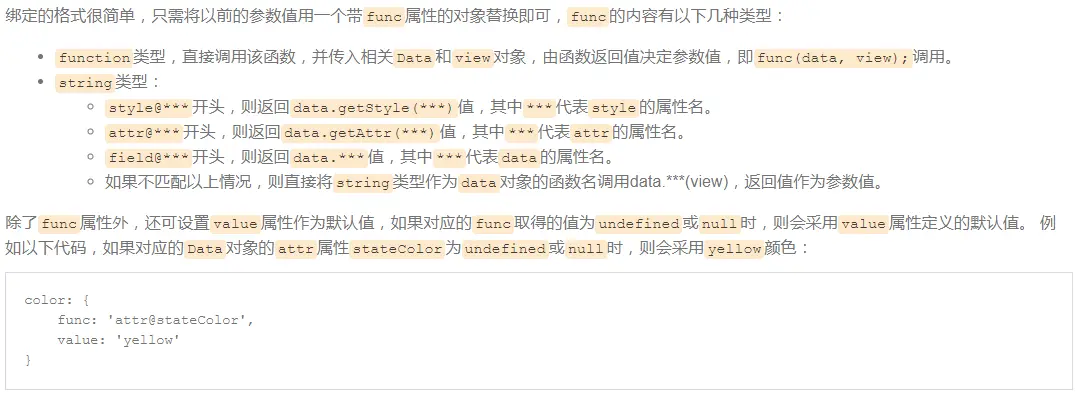 根据手册我们知道数据绑定的格式分为两种,一种是绑定 function 类型,另一种是绑定 string 类型,如下: