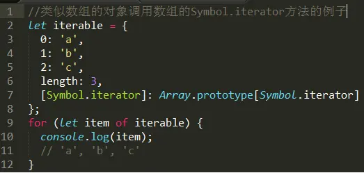 String, Array, Map, Set等是原生可迭代对象,因为他们都在原型(prototype)对象中实现了 Symbol.iterator 键对应的方法