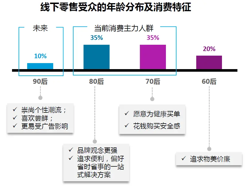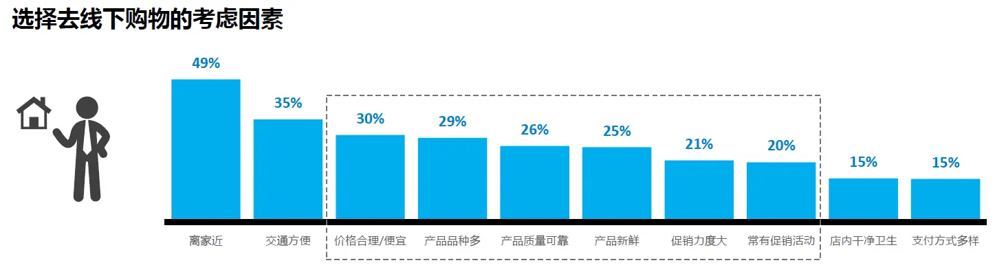 消费者选择去线下购物的核心利益点可作为零售商的首选品牌形象区隔点。白皮书数据发现,除了离家近和交通方便等地理因素外,价格优惠、产品品种多、品质可靠、产品新鲜、促销多是消费者选择去线下购物的主要驱动力。要根据目标消费者的诉求,进行清晰明确的品牌定位和品牌宣传。