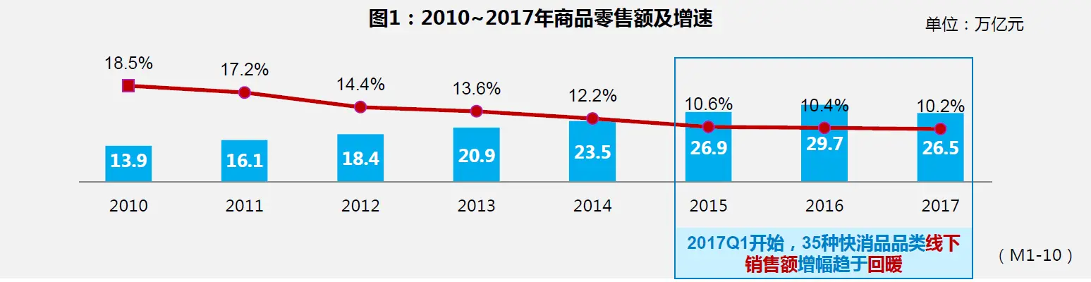 1、线上增长回归理性,线下增速回暖,零售战场向线下转移,新零售时代到来