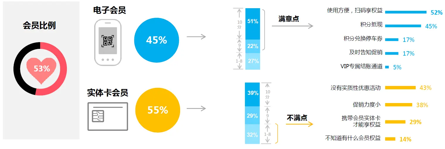 零售商会员现状:电子会员比例偏低,消费者反馈实体卡使用不便且会员权益不详