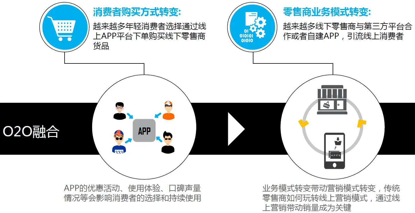 O2O融合,消费者购物方式的转变推动零售商业务模式和营销模式发生变化,推动人、货、场三者的有机联合,带动全新的消费场景和体验的展现