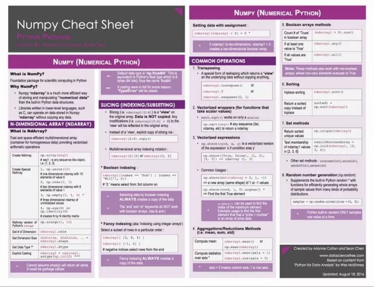Numerical Python 的缩写,NumPy 是采用 Python 进行科学计算和数据分析所必须的基本程序库。几乎所有的高级工具都是基于 Numpy 构建的,例如 Pandas 和 scikit-learn。 TensorFlow 使用 Numpy 数组作为基础构件模块,基于此,为深度学习任务构建了 Tensor 对象和 graphflow 。很多 Numpy 操作都是用 C 实现的,这使它运行更快。对数据科学和现代机器学习任务来说,这是一个宝贵的优势。
