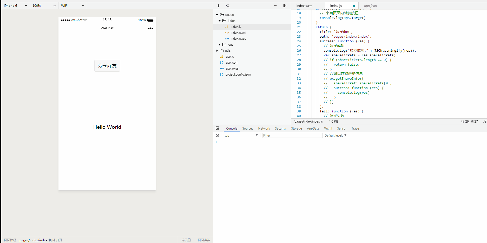 友情提示一下如果点击按钮分享的话,button一定要设置open-type="share"否则不起作用。