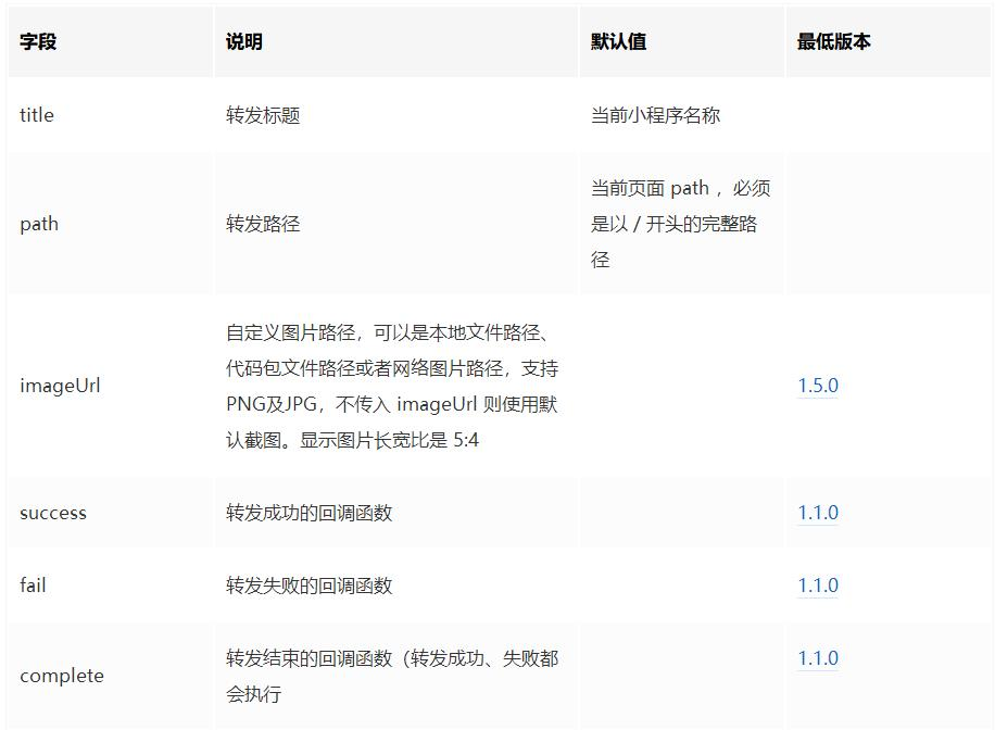 - 只有定义了此事件处理函数,右上角菜单才会显示 “转发” 按钮