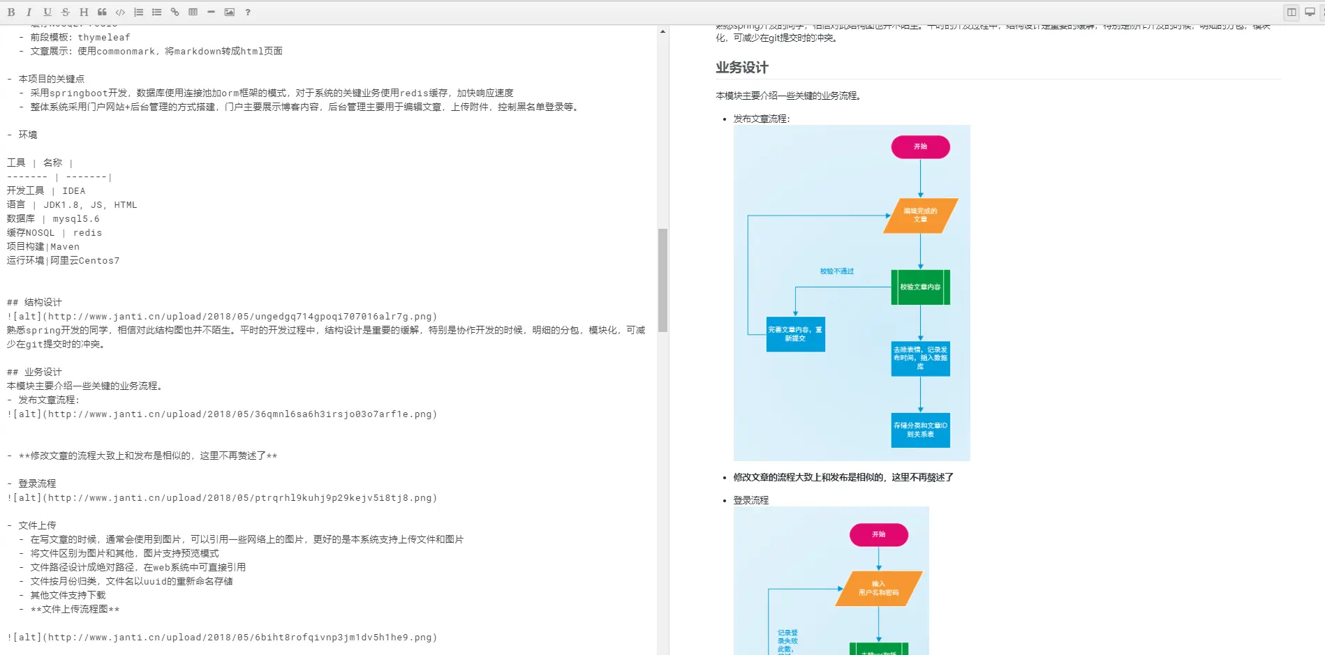 - 整体系统采用门户网站+后台管理的方式搭建,门户主要展示博客内容,后台管理主要用于编辑文章,上传附件,控制黑名单登录等。