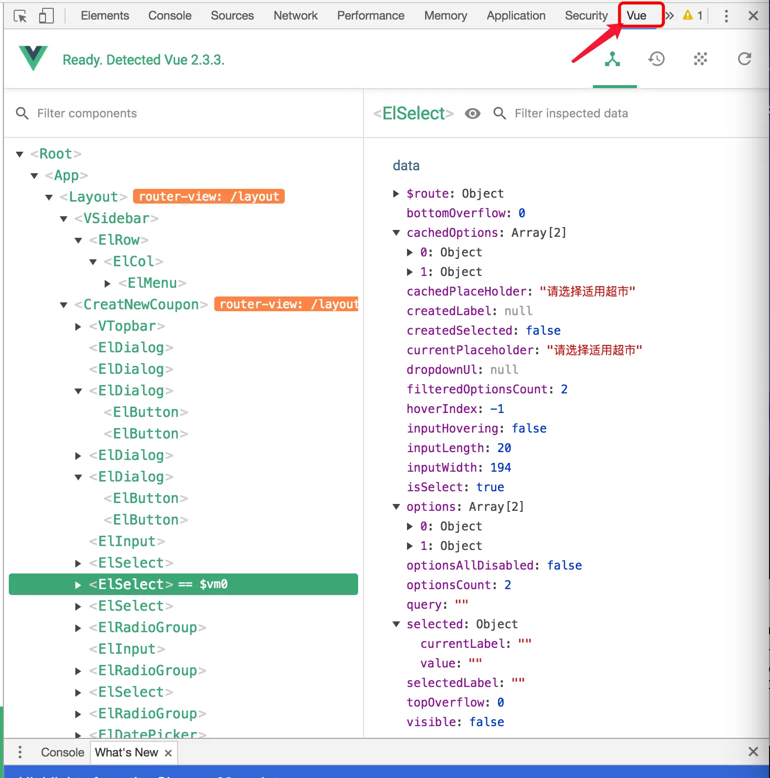 5.vue项目, 打开f12, 选择vue就可以使用了.