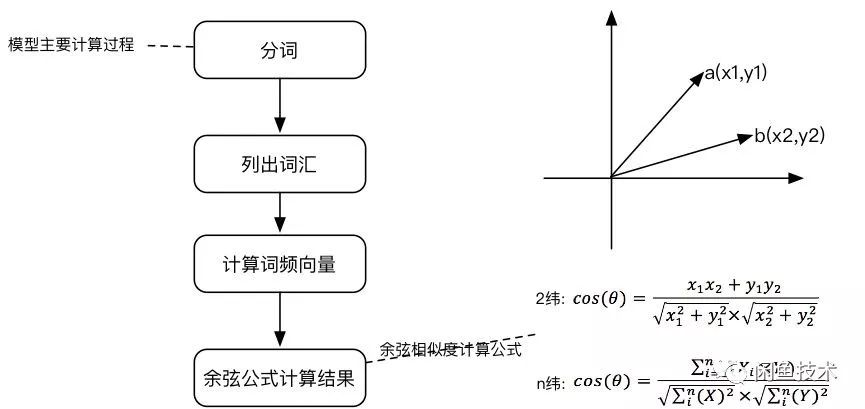 夹角越小,相似性越大。对于二纬空间,可以用向量的点积来表示,假设向量a、b的坐标分别为(x1,y1 )、(x2,y2) ,则: