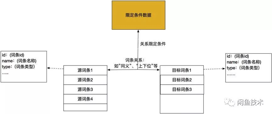 2)此外,词条与词条之间可能存在某种关系,如“番茄”词条和“ 西红柿”词条互为同义词关系(前提是限定在蔬菜这个条件下)。因此,还需要为词条建立关联关系,建立的关联关系也必须在一个限定条件下才有意义,其结构可以设计为图10所示: