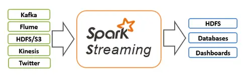Spark Streaming支持如HDFS目录,TCP套接字,Kafka,Flume,Twitter等数据源。数据流可以用Spark 的核心API,DataFrames SQL,或机器学习的API进行处理,并且可以被保存到HDFS,databases或Hadoop OutputFormat提供的任何文件系统中去。