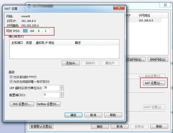 - 去掉VMnet0和VMnet1,只保留VMnet8。