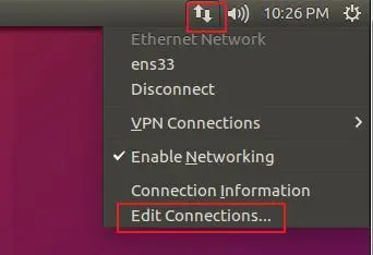 在Ubuntu桌面的右上角,点击网络图标,然后选择“Edit Connections”: