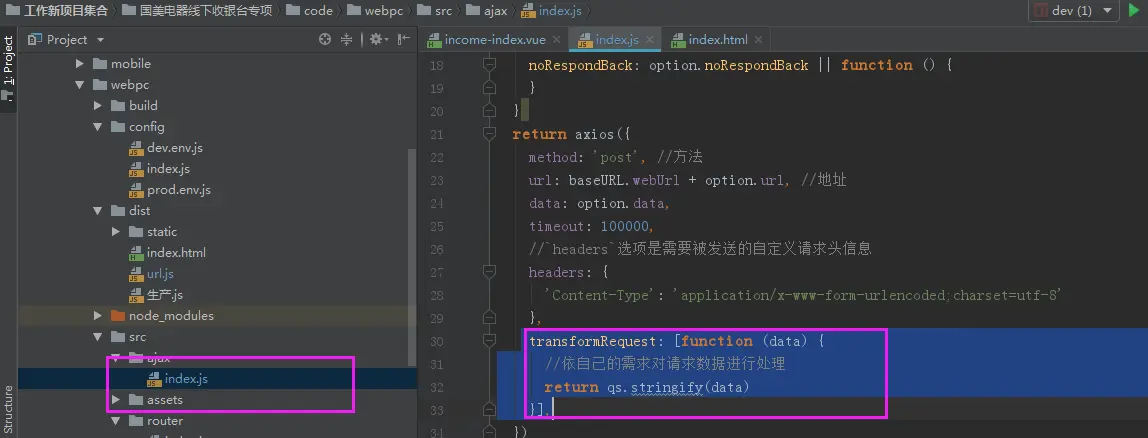 (3)axios如果没有下面这段代码(transformRequest),也会出现在request payload中,