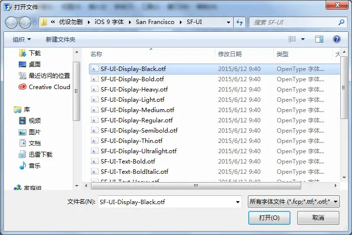以上两部简单操作后,就能将 San Francisco 字体装进Windows。PS、AI等可以正常使用,完美!