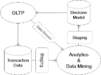在这个模型中,数据是在各种各样的OLTP系统中生成的,这些系统更新了事务数据存储,并异步发送其他数据用于分析处理。分析处理过程将输出写入到决策模型,该决策模型会将信息反馈给OLTP系统来进行实时决策。