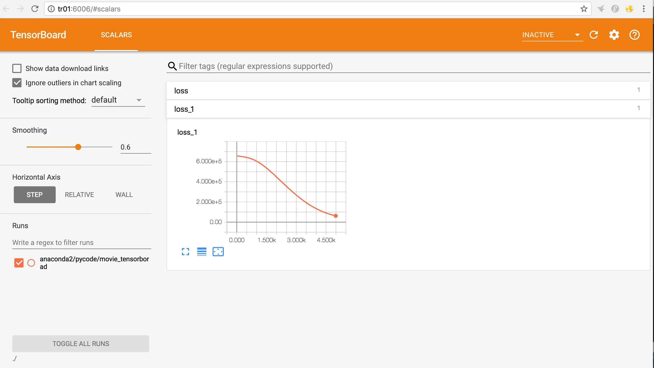 查看训练结果: 在终端输入 tensorboard --logir=./
