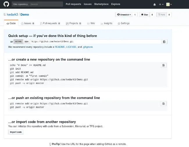然后,如果您访问 https://github.com/<your_username>/Demo,您会看到截图内显示的情况: