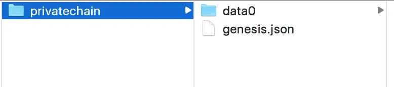 准备好创世区块json配置文件后,需要初始化区块链,将上面的创世区块信息写入到区块链中。首先要新建一个目录data0用来存放区块链数据(其实,这个目录data0就相当于一个根节点。当我们基于genesis.json生成根节点后,其他人就可以来连接此根节点,从而能进行交易)。data0目录结构如图所示: