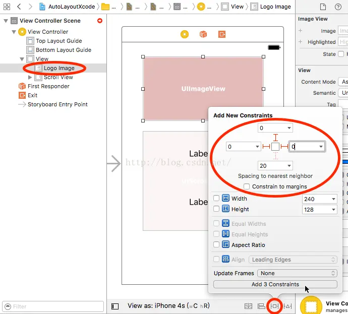 要想正确定位Logo Image,我们需要添加4个约束,分别是: