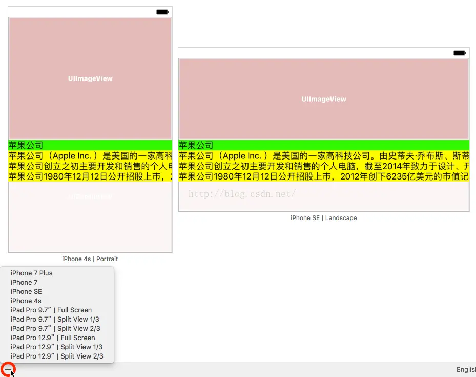 - 使用Xcode的Interface Builder界面设计器添加并设置约束