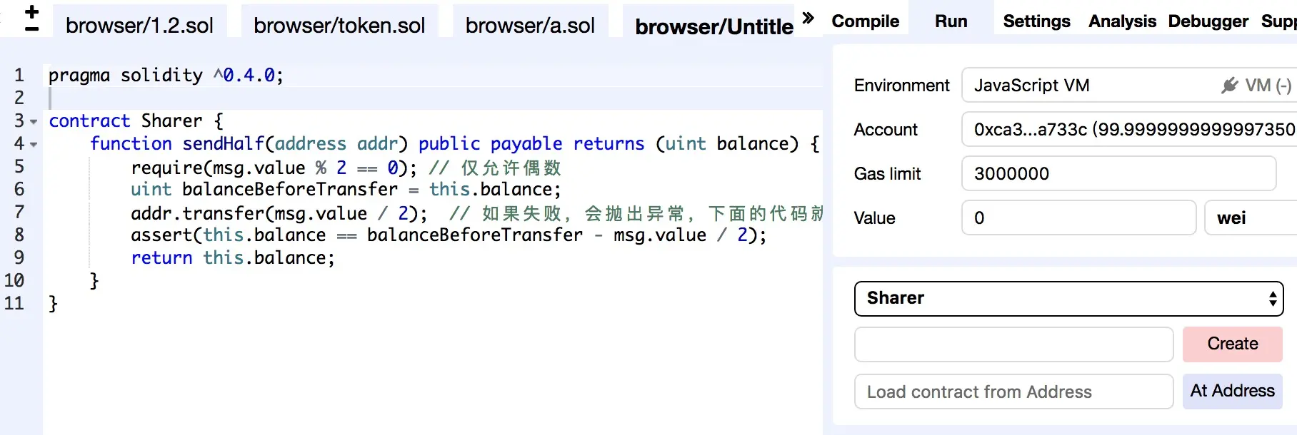 首先打开Remix,贴入代码,点击创建合约。如下图: