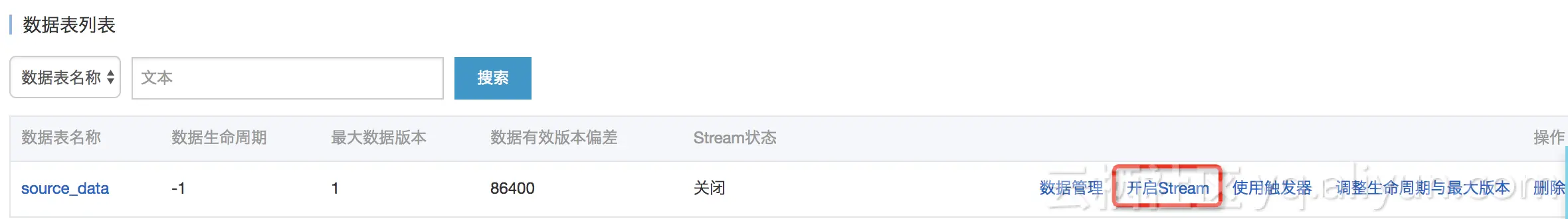 触发器功能需要先开启数据表的Stream功能,才能在函数计算中处理写入表格存储中的增量数据。