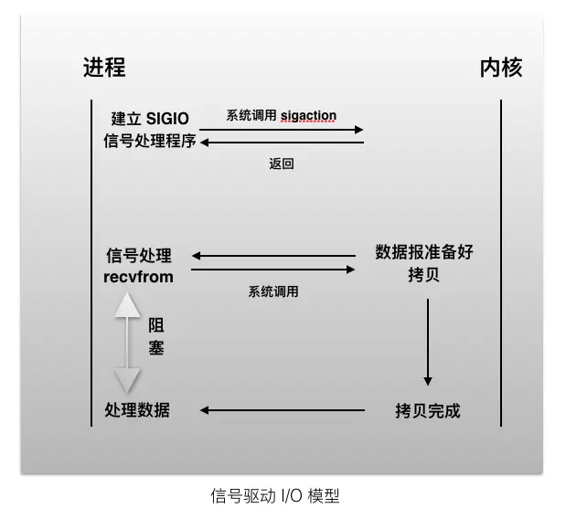 所以前四种模型被称为同步 I/O 模型,其真正的I/O 操作将阻塞进程!