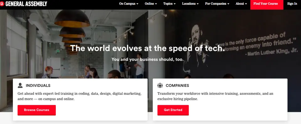 GA是由Jake Schwartz于2011年创办的一家私营盈利教育机构,目前被称为提供教育和职业转型的先驱者,并致力于提供移动和网络开发,产品管理、数据科学和其他数字相关的课程,并在世界各地设有线下机构,对于企业家和商业人士来说都是不错的提升技能的选择。
