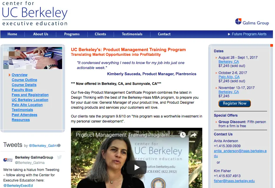 这是来自美国加州伯克利大学分院备受好评的MBA课程,其中为期5天的产品管理培训课程,不仅将商业和设计思维很好地融合,而且从市场竞争和业务模式促成以客户为中心的设计,让你在最短的时间内收获产品管理的知识。全程有私人教练指导实践联系,根据个人实际情况定制个性化的培训课程。
