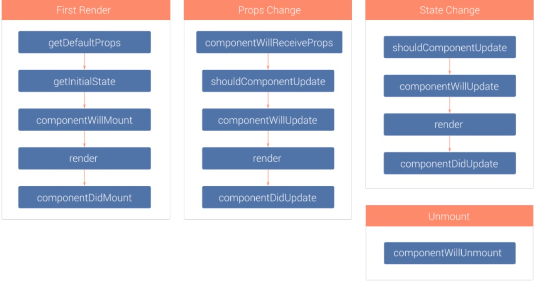 - componentWillMount render 之前最后一次修改状态的机会;组件即将被装载,组件即将被渲染在页面上