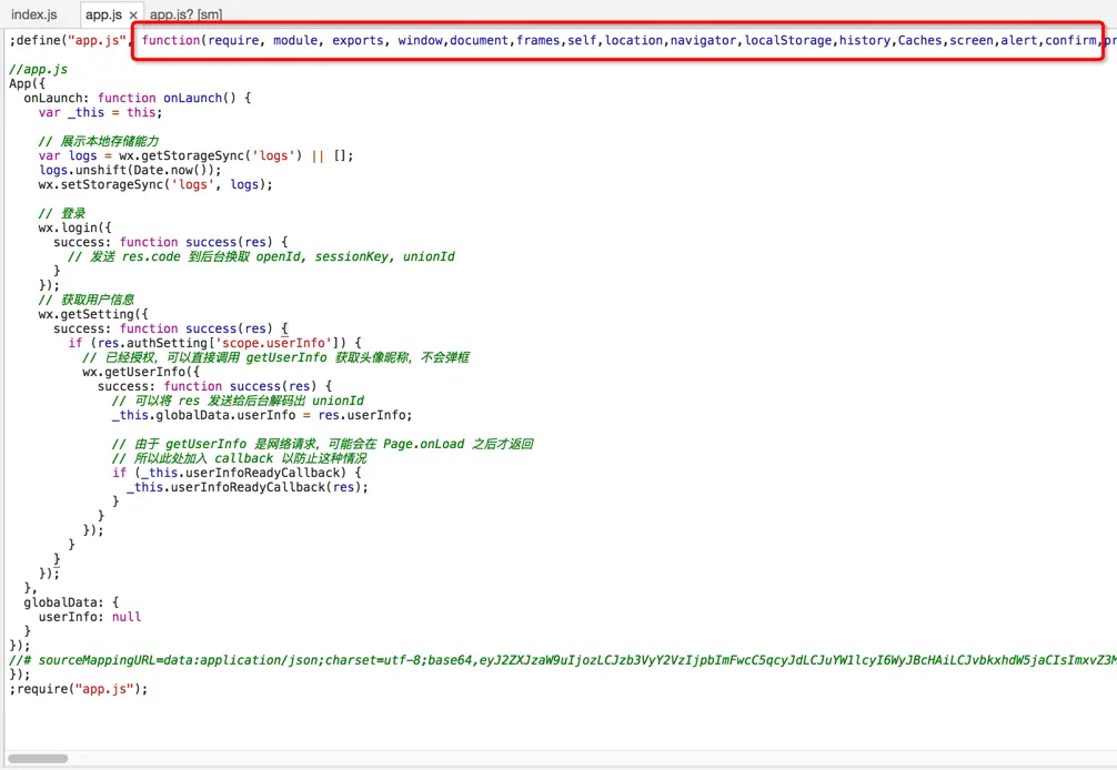 其中O就是上面define('app.js',callback),的回调,回调值传入了三个参数,屏蔽了其他属性
