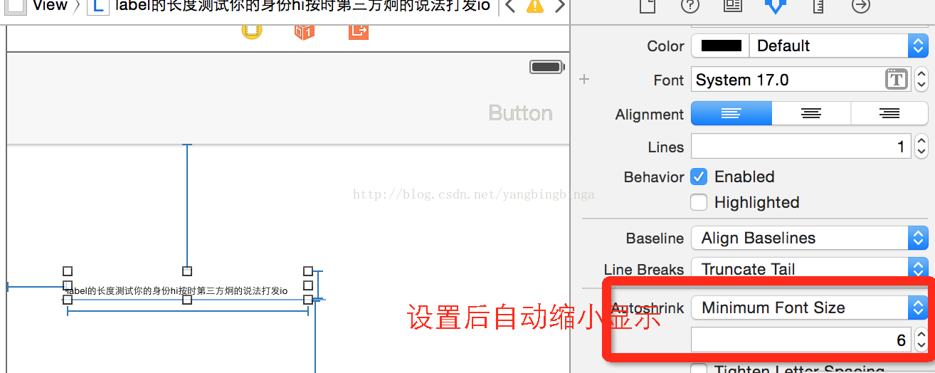 相比大家会经常遇到 label 或则 textfield等显示文字的 视图时,显示不全,或者无法自动 变化长度 ,自动改变字体的 设置: