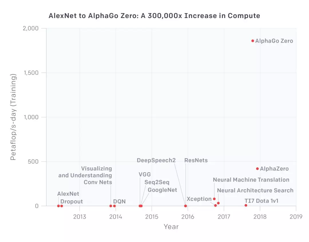 2016 年至 2017 年:允许更大算法并行性的方法(如大批量、体系结构搜索和专家级迭代)以及专用硬件(如 TPU 和更快的互连)大大提高了这些上限,至少对于某些应用程序而言。