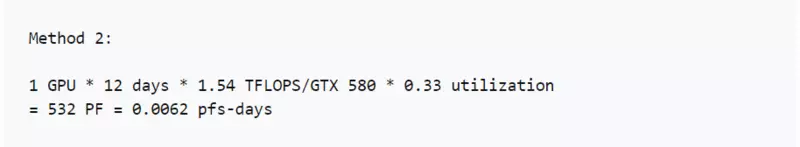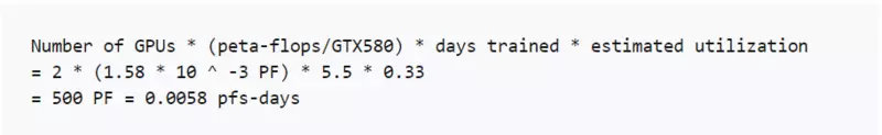 举例来说,在 AlexNet 的论文中表示“我们的网络需要花费五到六天的时间在两个 GTX 580 3GB GPU 上进行训练”。根据我们的假设,这意味着总计算量为: