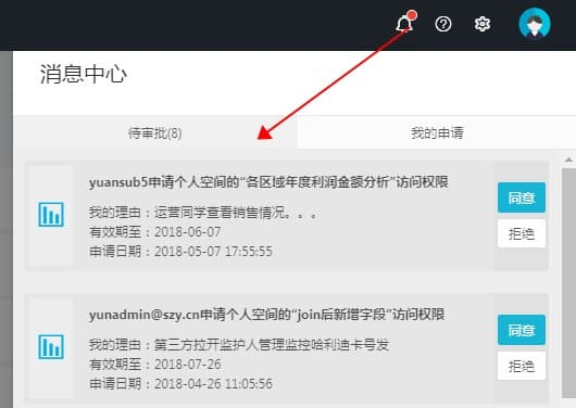 如下图,yuan_sub5用户打开数据门户链接,对内仪表板均无查看权限,需要申请: