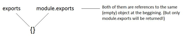 exports与module.exports指向相同的对象的引用,并且此对象是一个空对象{}。