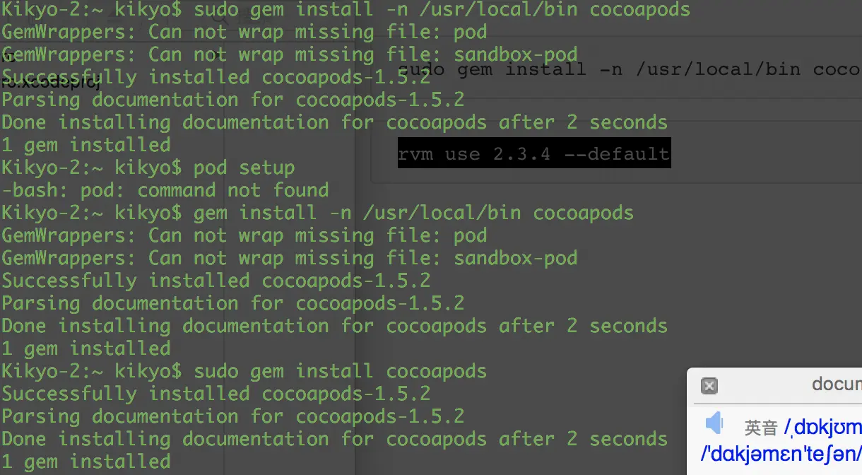 Kikyo-2:~ kikyo$ sudo gem install -n /usr/local/bin cocoapods