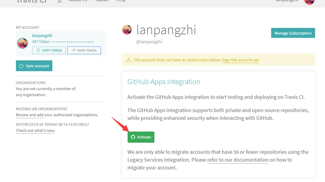 travis-ci.com然后添加到你要激活的存储库。