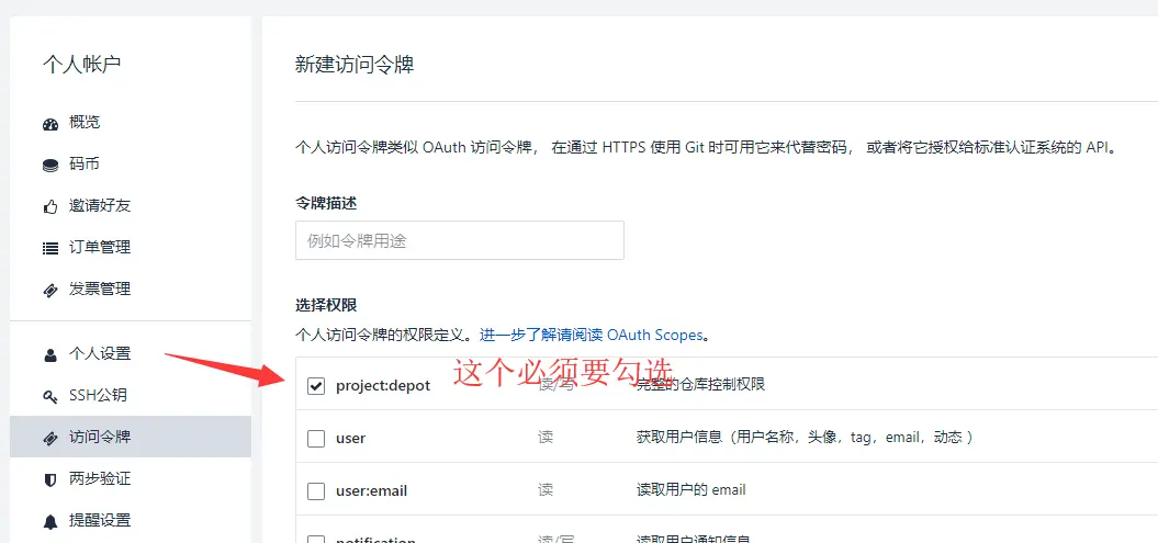 然后生成github和coding的Token。 先生成github的Token。 github.com/settings/to… 点击Generate new token。