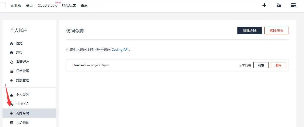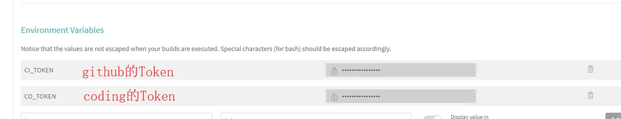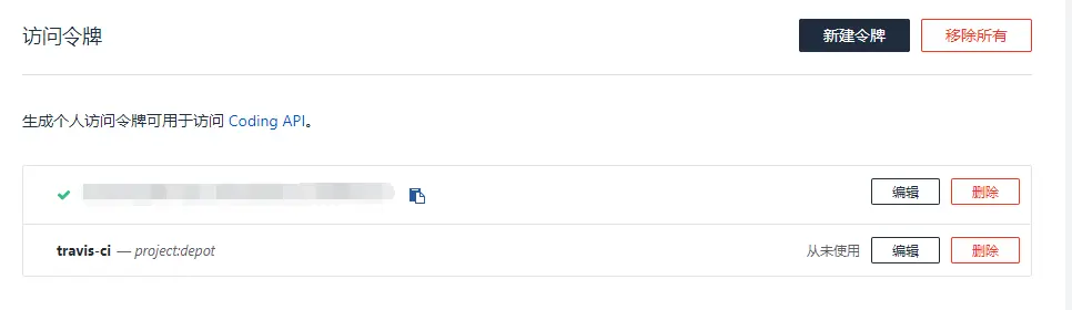 登陆travis-ci把github和coding的Token复制到环境变量。 travis-ci.com/