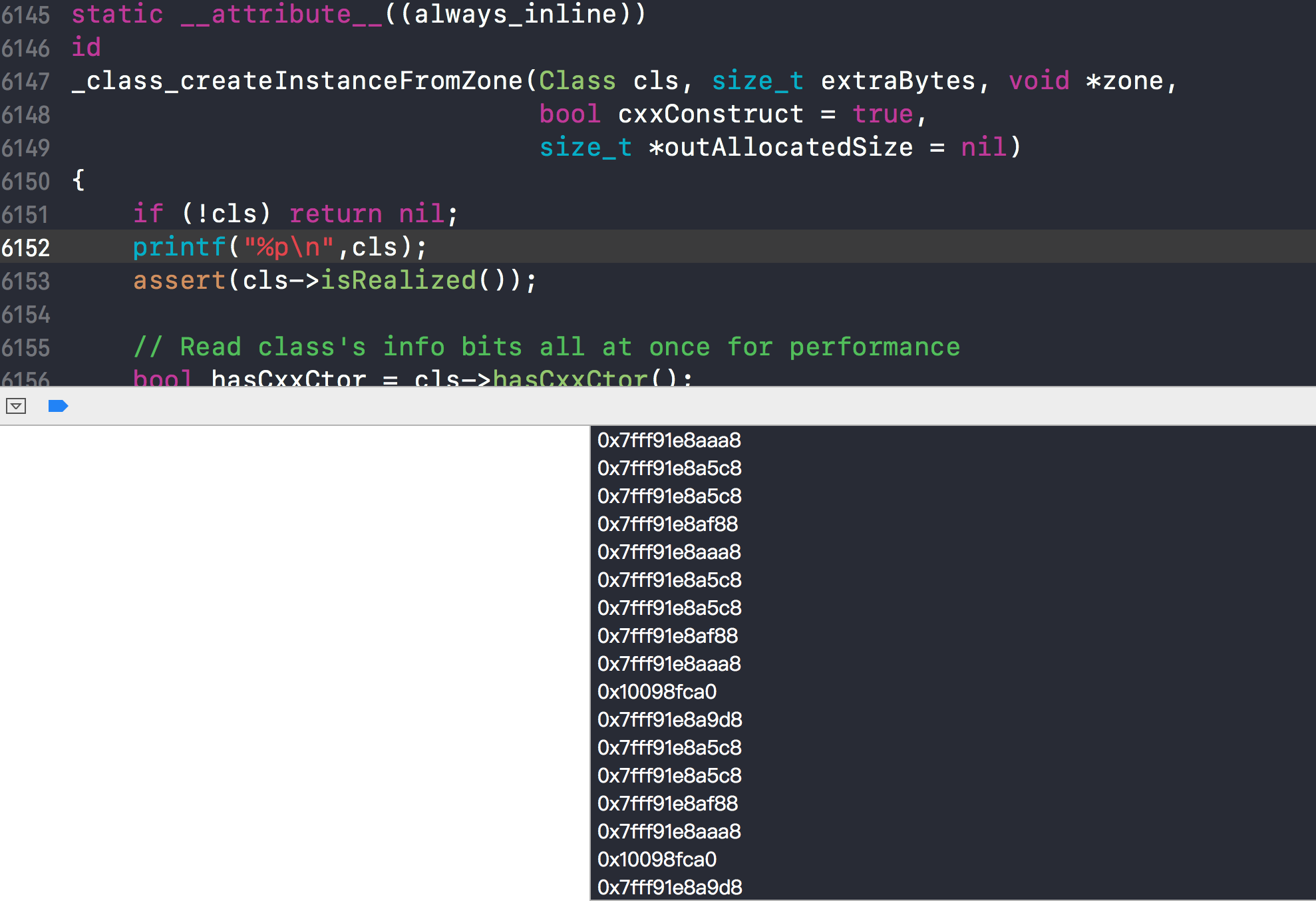 - isa是一个union,里面包含一个结构体。每一个字段代表一段信息,其中它的类信息存在于shiftcls中。我们可以通过object_getClass()函数获取一个对象的类信息。这里需要注意一点,对象的